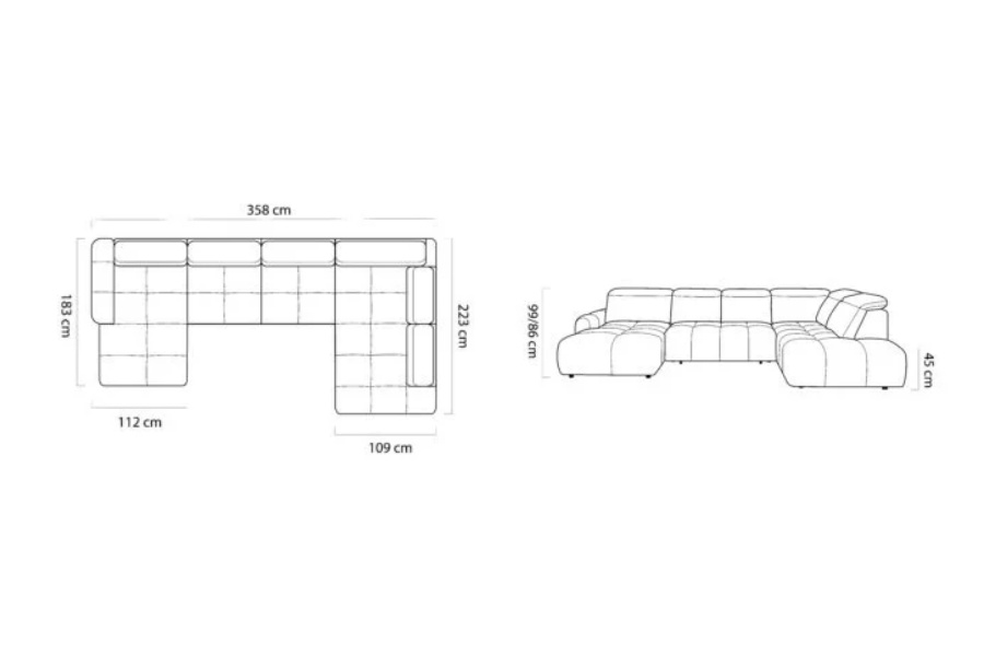 Coltar cu reglaj electric MATEO XL cu lada pentru depozitare, tetiere reglabile, personalizabil 358x223x183cm