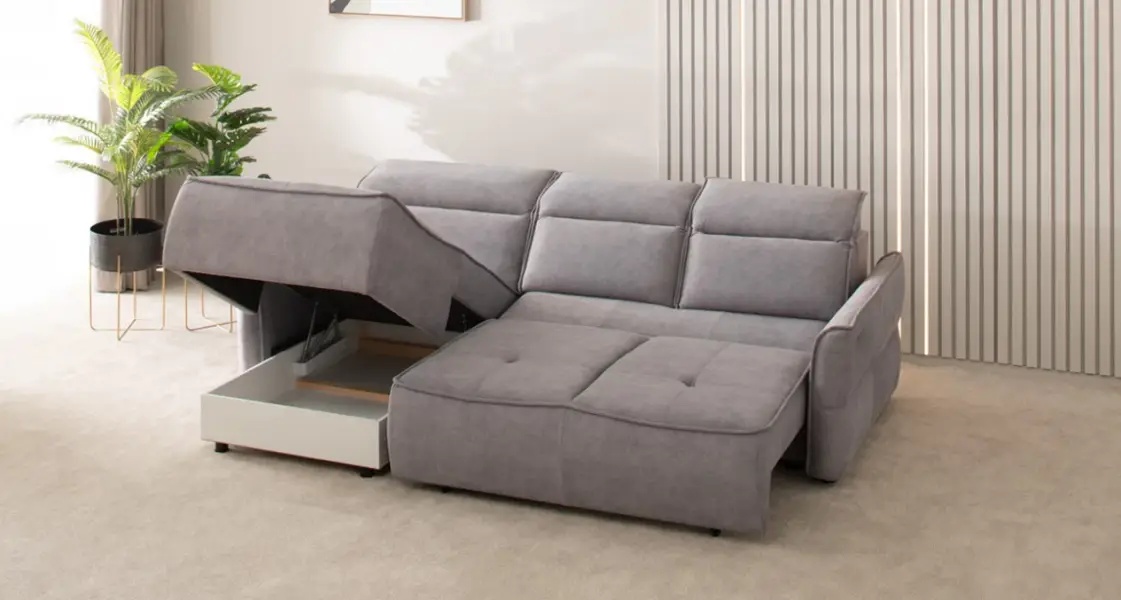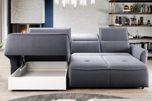 Coltar cu reglaj electric MURILLO MINI cu lada pentru depozitare, tetiere reglabile, personalizabil 260x175cm