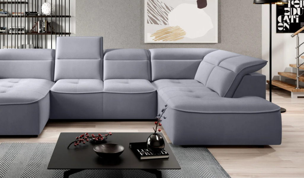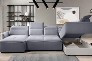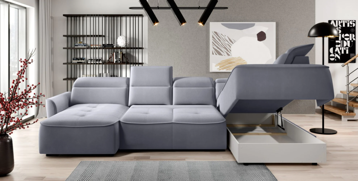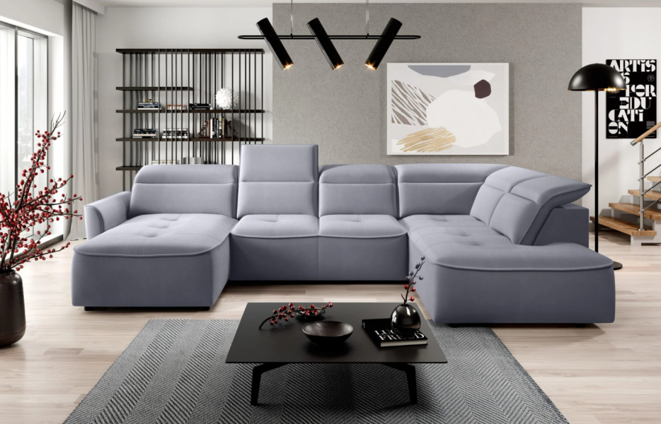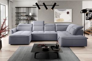 Coltar cu reglaj electric MURILLO XL cu lada pentru depozitare, tetiere reglabile, personalizabil 350x218x175cm
