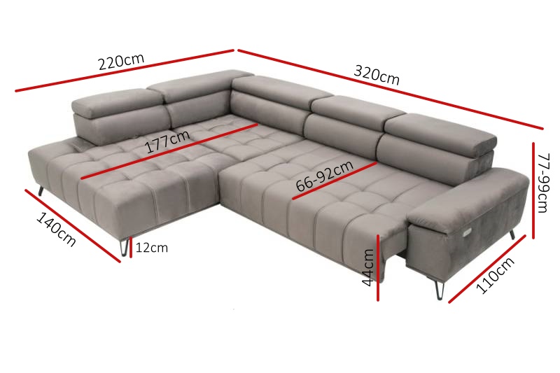 Coltar cu reglaj electric PALLADIO L cu tetiere reglabile, personalizabil 320x220cm