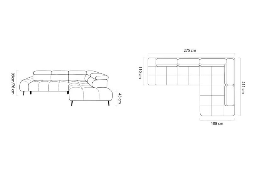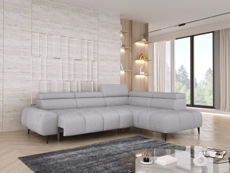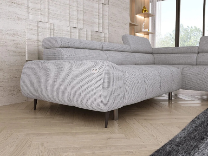 Coltar cu reglaj electric SANTO L cu tetiere reglabile, personalizabil 275x211cm
