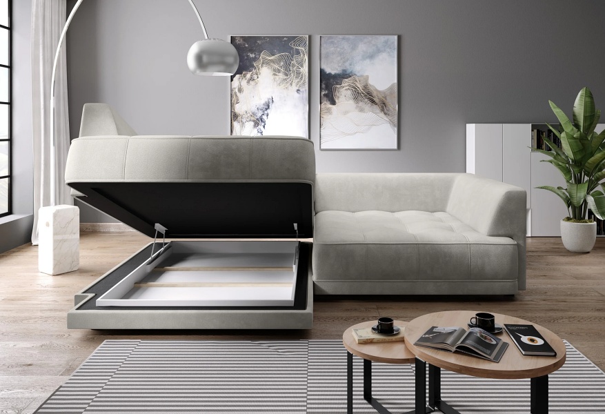 Coltar cu reglaj electric TIGA Box cu lada pentru depozitare, personalizabil 286x207cm