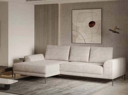 Coltar extensibil (140cm) VANILLA cu lada pentru depozitare, personalizabil 283x173cm