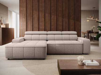 Coltar cu reglaj electric TOLLO XL cu lada pentru depozitare, tetiere reglabile, personalizabil 400x217x171cm