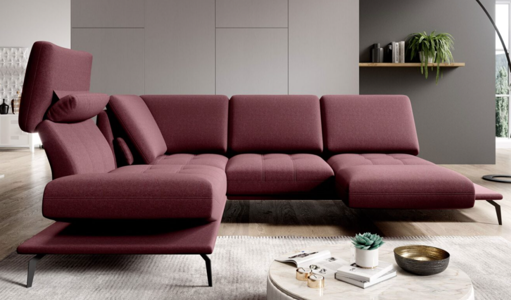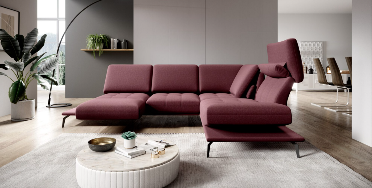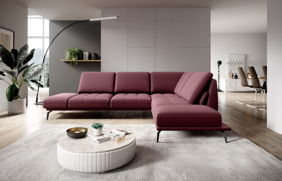 Coltar cu sezut rotativ FLAVIO catifea visinie, cu spatar reglabil 292x220cm