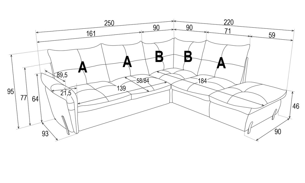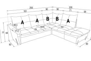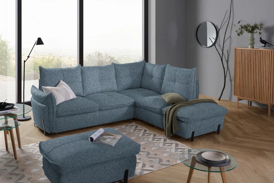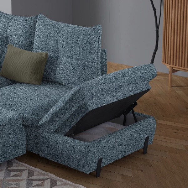 Coltar extensibil ALMERIA 2 cu lada pentru depoziare, personalizabil 250x220cm