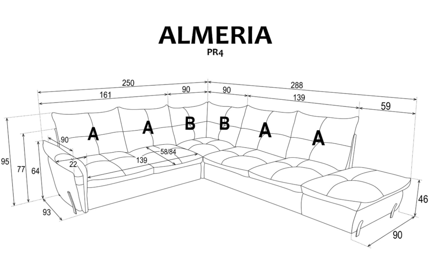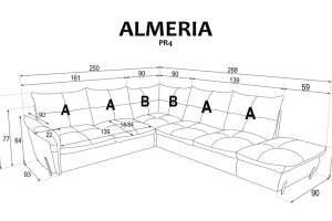 Coltar extensibil ALMERIA 4 cu lada pentru depozitare, personalizabil 288x250cm