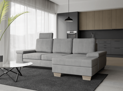 Confortul si utilitatea se imbina armonios in acest model elegant. APOLLO, coltarul extensibil, este dotat cu extensie DL, spatiu de depozitare tip lada si tetiera reglabila, fiind perfect pentru un living modern si functional.