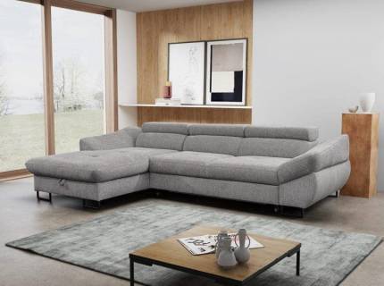 Confortul si utilitatea se imbina armonios in acest model elegant. APOLLO, coltarul extensibil, este dotat cu extensie DL, spatiu de depozitare tip lada si tetiera reglabila, fiind perfect pentru un living modern si functional.