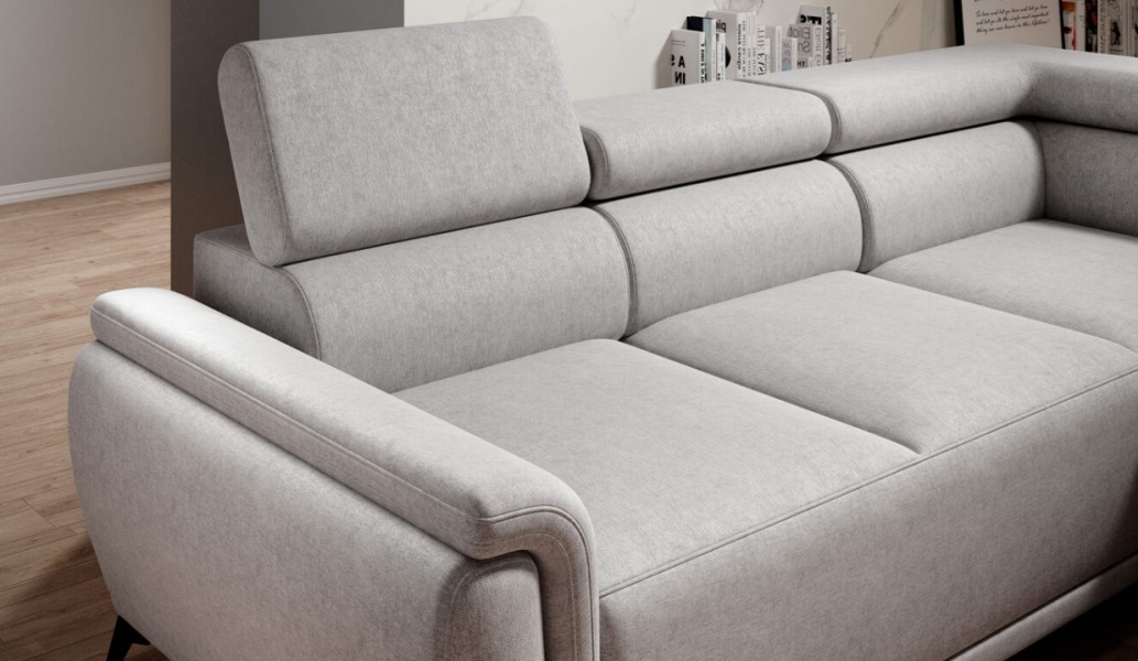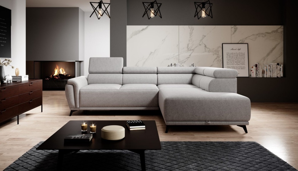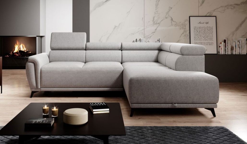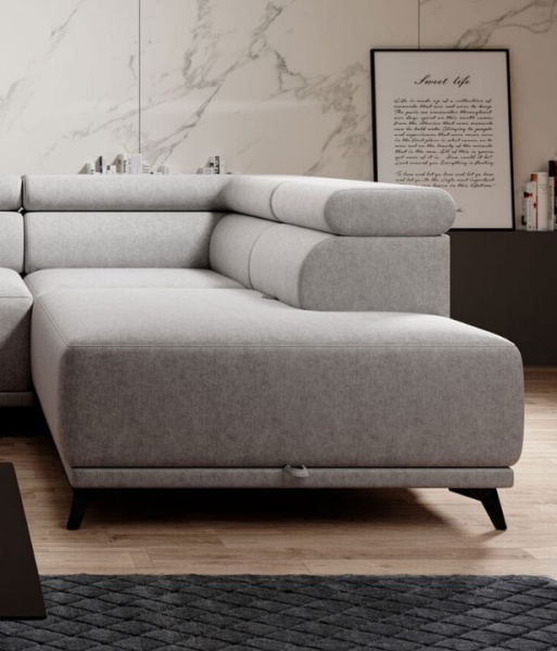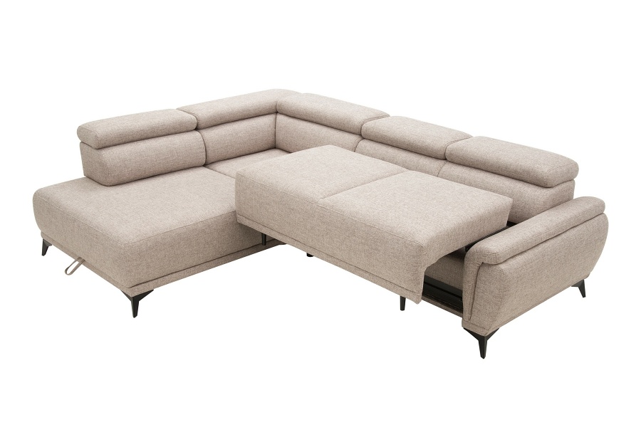 Coltar extensibil ATLANTA cu lada pentru depozitare, tetiere reglabile, personalizabil 281x203cm