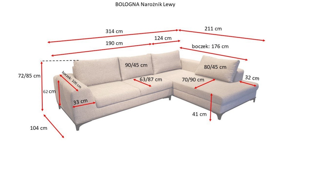 Coltar extensibil BOLOGNA cu lada pentru depozitare, personalizabil 314x211cm