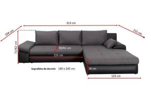 Coltar extensibil BONO cu lada pentru depozitare, reversibil, personalizabil 313x215cm