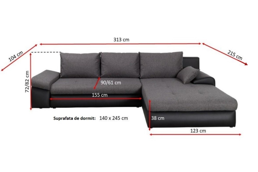 Alte caracteristici: coltarul este modular (sezlongul poate fi montat pe stanga sau pe dreapta), 3 perne - incluse