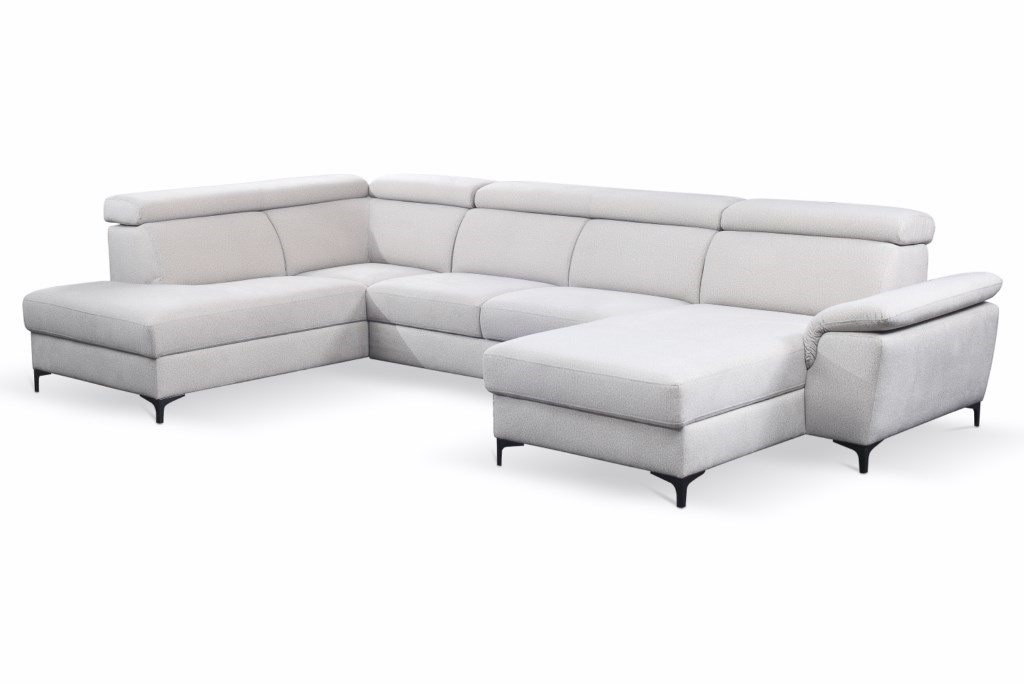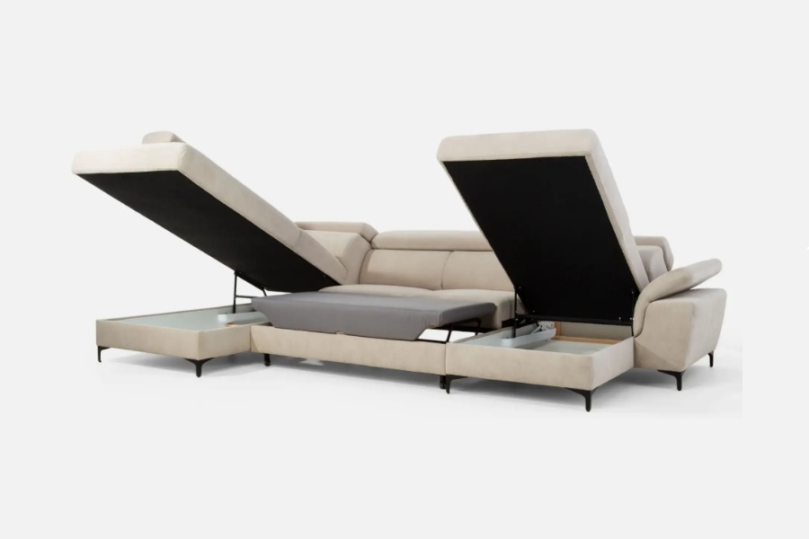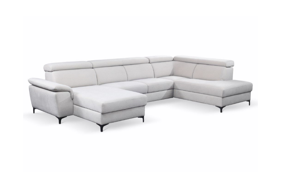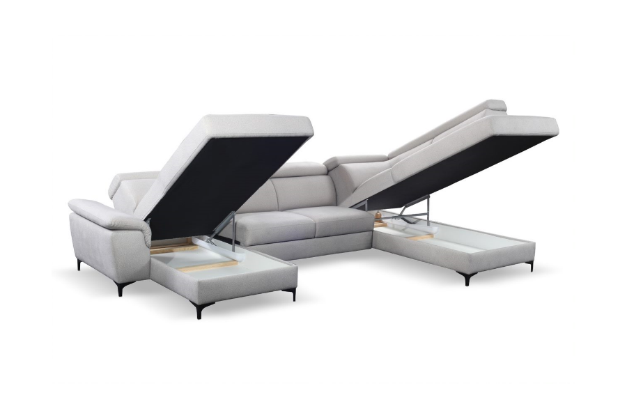 Coltar extensibil BRAGA U cu lada pentru depozitare, tetiere reglabile, personalizabil 211x350x171cm