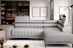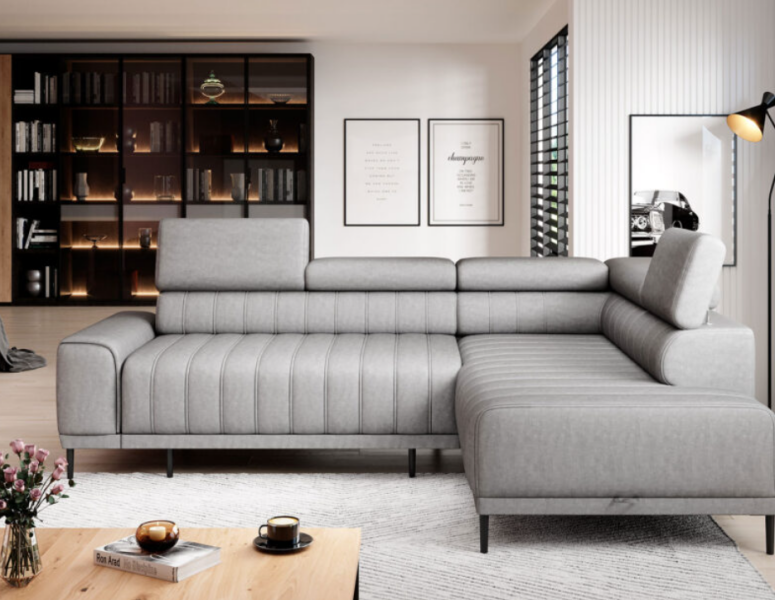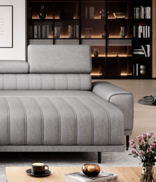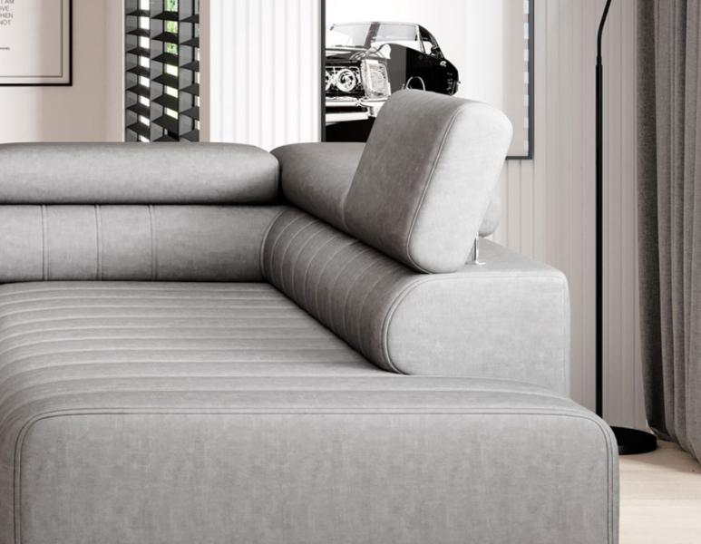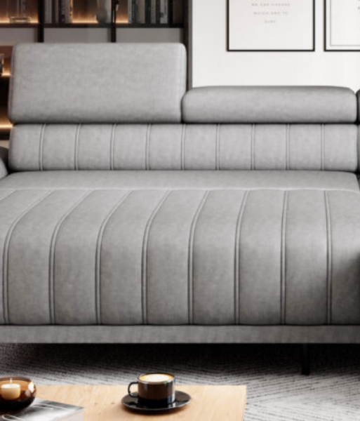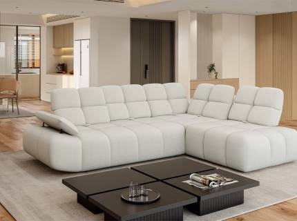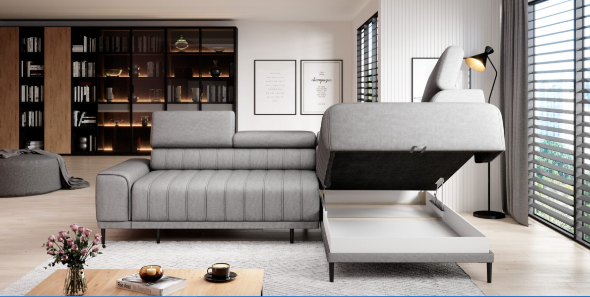 Coltar extensibil CALDO L cu lada pentru depozitare, tetiere reglabile, personalizabil 268x200cm