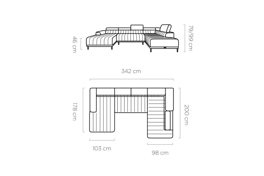 Coltar extensibil CALDO XL cu lada pentru depozitare, tetiere reglabile, personalizabil 200x342x178cm