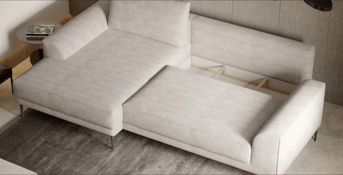 Coltar extensibil cu 3 perne mari incluse, extensie tip doppel liege, spațiu de depozitare tip ladă și arcuri sinusoidale, oferind confort și funcționalitate. Coltar extensibil CAPITOL, ideal pentru un living modern și practic.