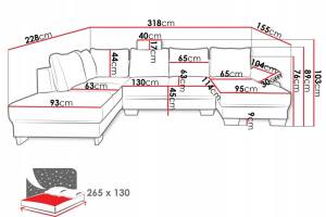 Coltar extensibil CHIVAS U cu cotiera reglabila, personalizabil 228x318x155cm