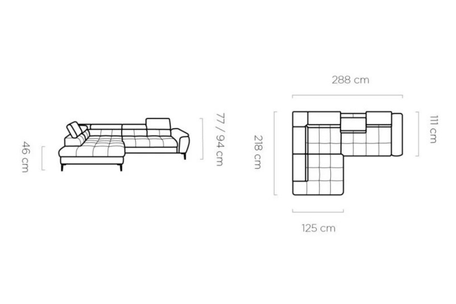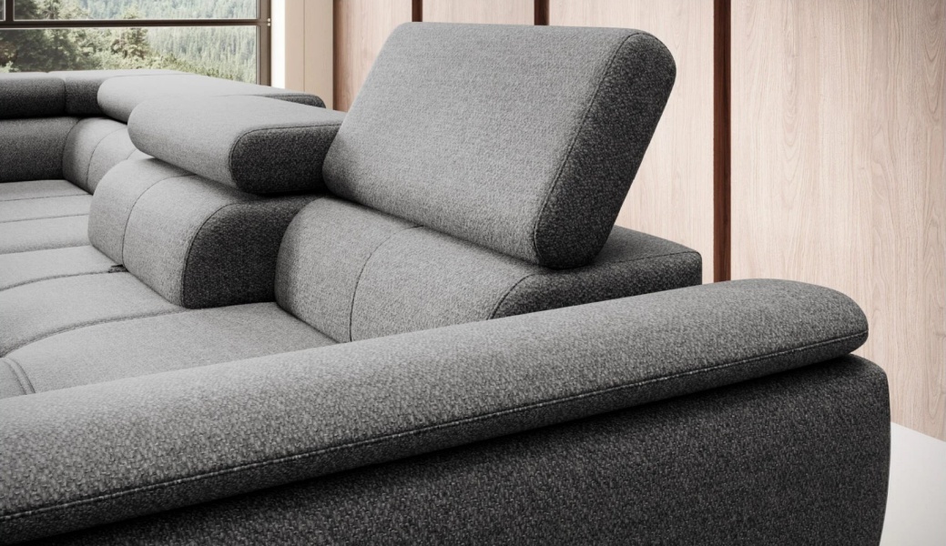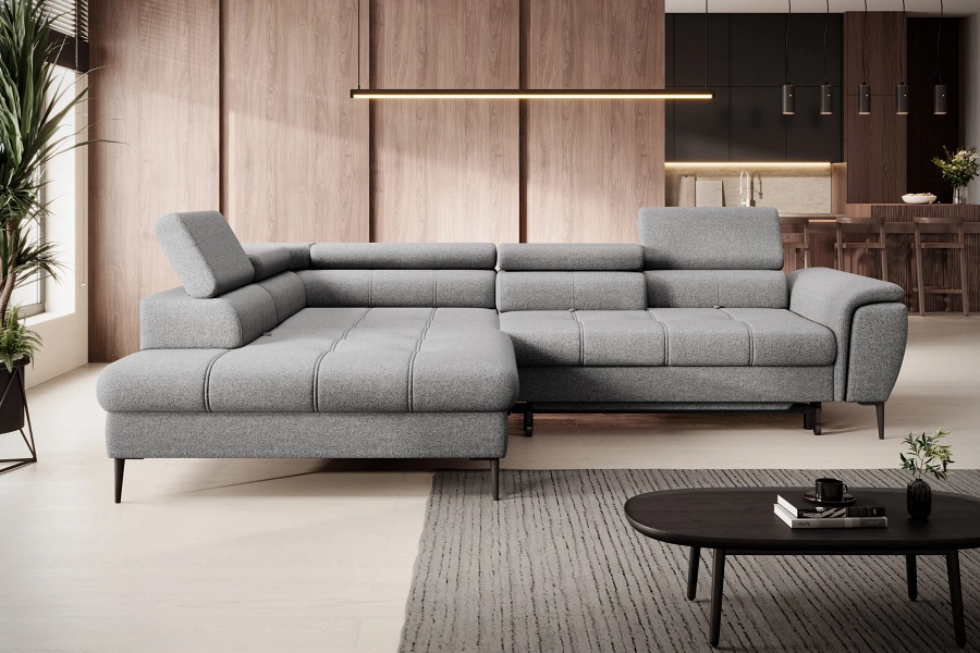 Coltar extensibil DENVER L cu lada pentru depozitare, tetiere reglabile, spatar reglabil, personalizabil 288x218cm