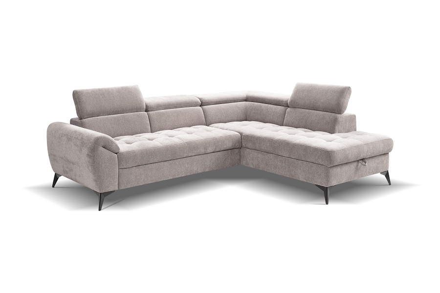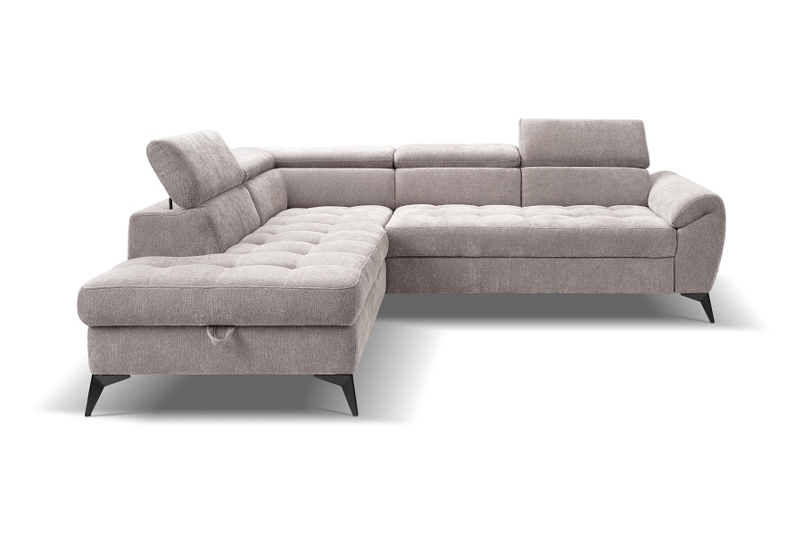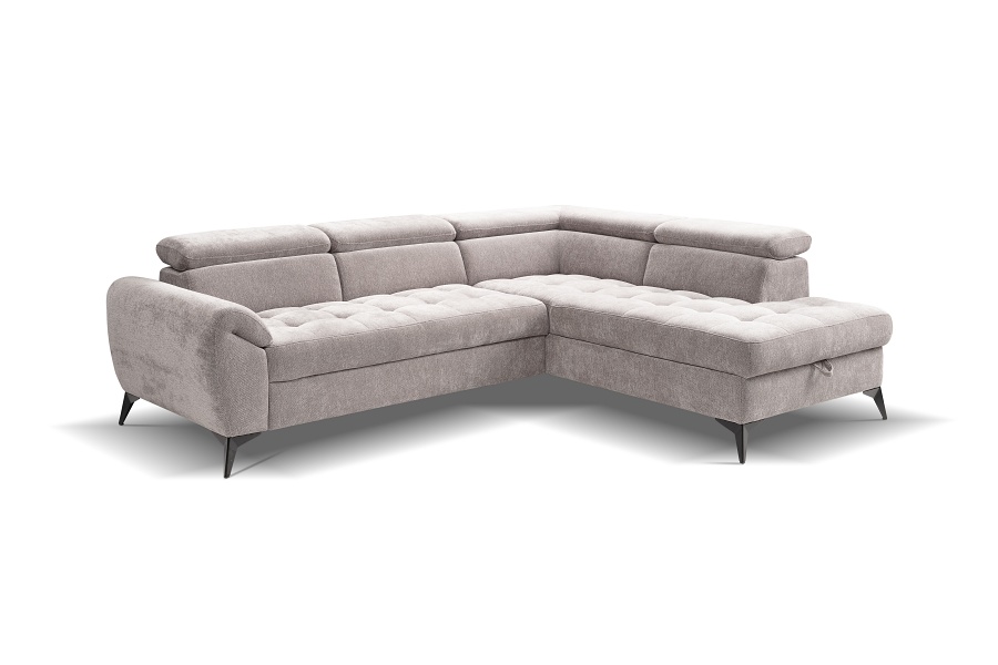Coltar extensibil EDEN cu lada pentru depozitare, tetiere reglabile, personalizabil 248x200cm