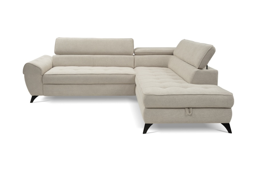 Coltar extensibil ELENA cu lada pentru depozitare, tetiere reglabile, personalizabil 251x203cm