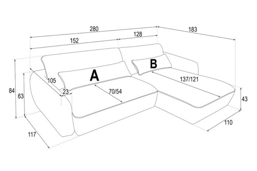 Adancime sezlong: 121 / 137 cm