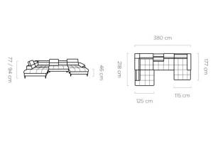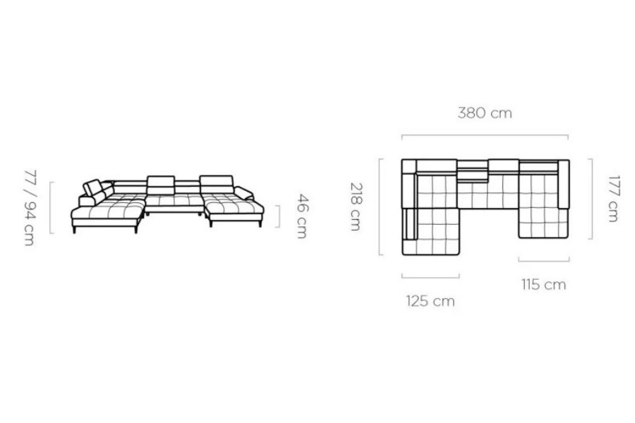 Coltar extensibil EMPOLI XL cu lada pentru depozitare, tetiere reglabile, spatar reglabil, personalizabil 218x380x177cm