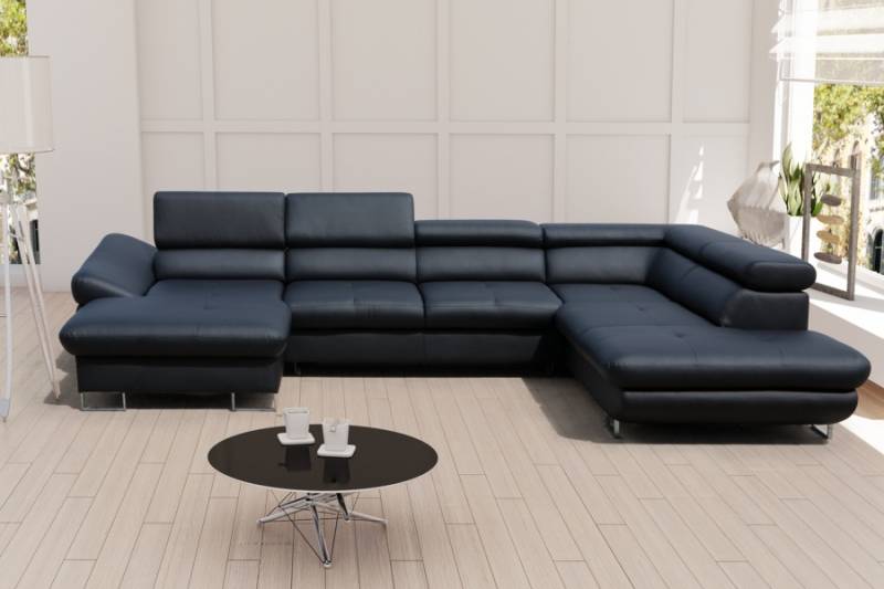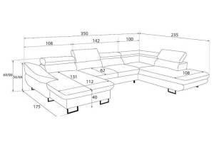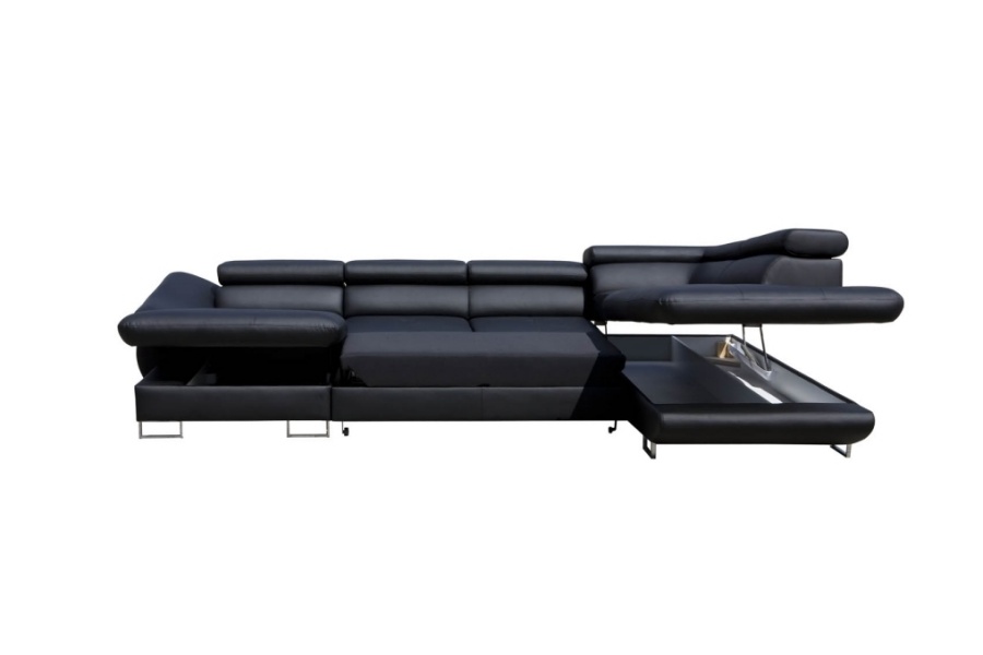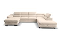 Coltar extensibil FABIO U cu lada pentru depozitare, tetiere reglabile, personalizabil 350x235x175cm