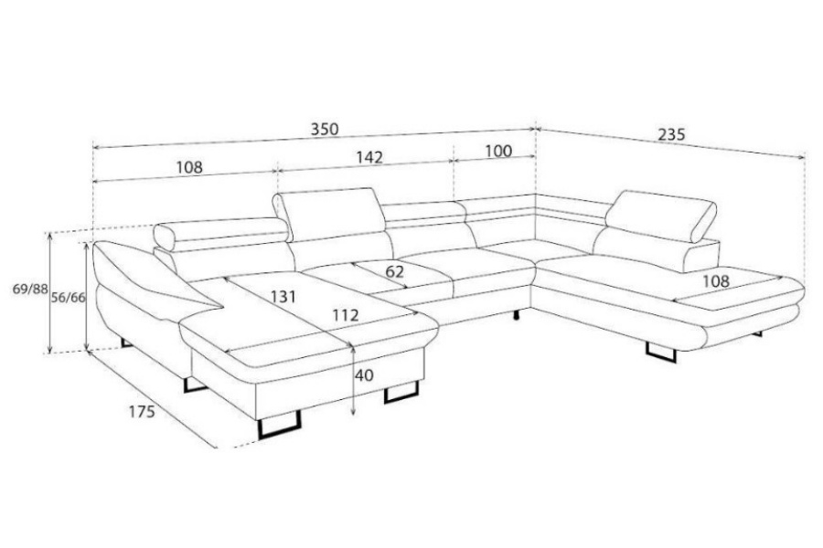 Lungime sezlong lung: 235 cm