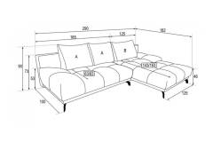 Coltar extensibil FELIPE cu lada pentru depozitare, personalizabil 290x182cm