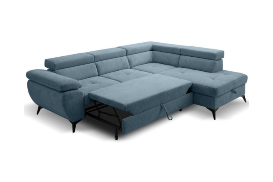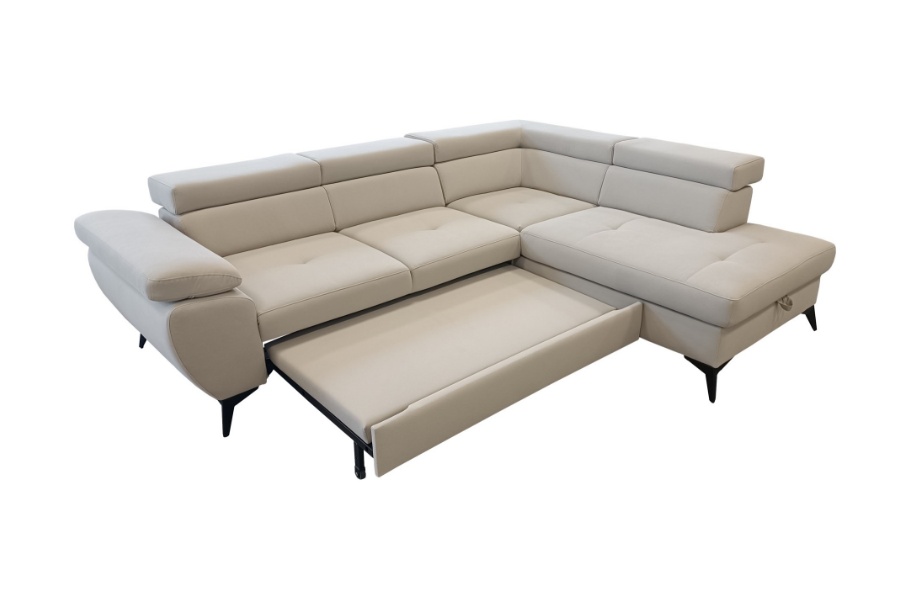 Coltar extensibil FLORIS cu lada pentru depozitare, tetiere reglabile, cotiera reglabila, personalizabil 256x200m