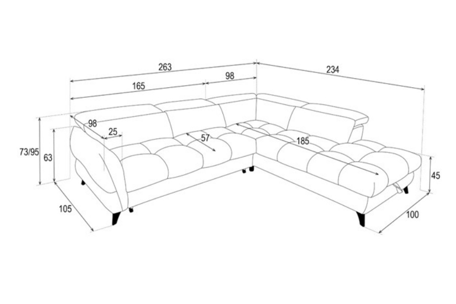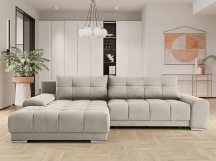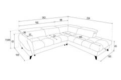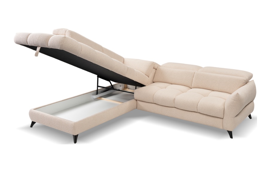 Coltar extensibil FUBU cu lada pentru depozitare, tetiere reglabile, personalizabil 263x234cm