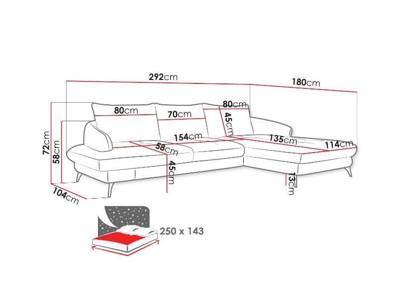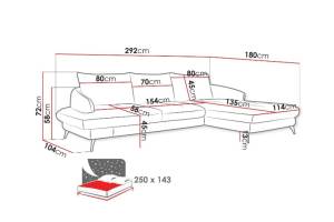 Coltar extensibil FUTURO cu lada pentru depozitare, personalizabil 292x180cm