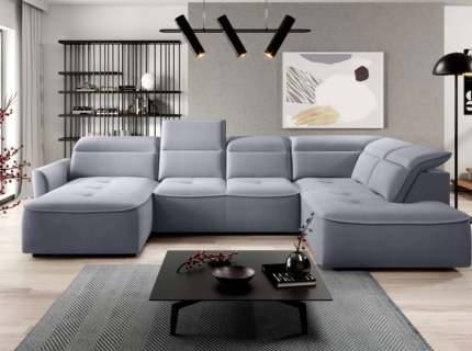 Coltar extensibil FUTURO cu lada pentru depozitare, personalizabil 292x180cm