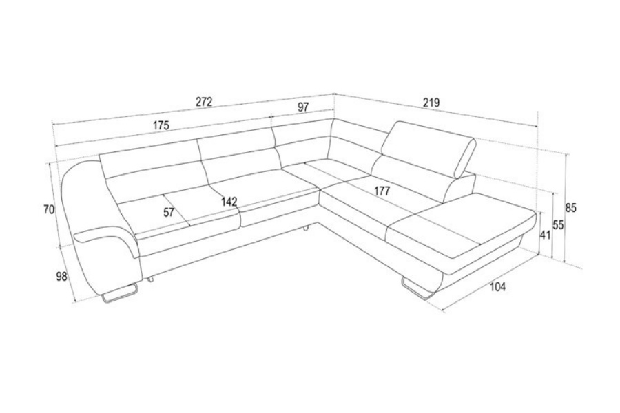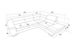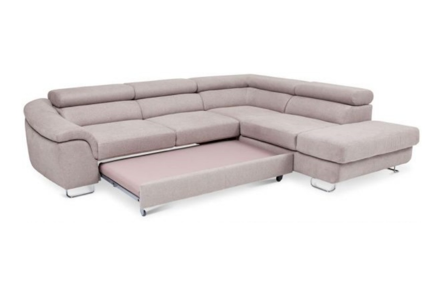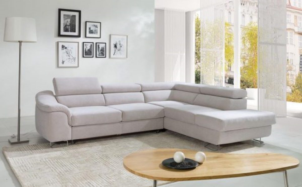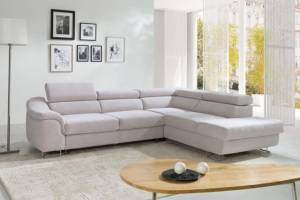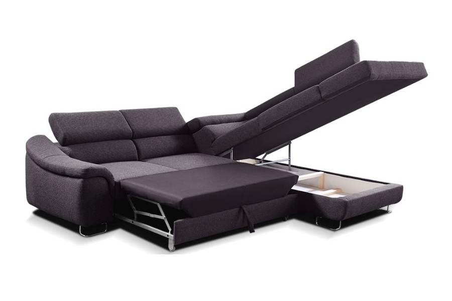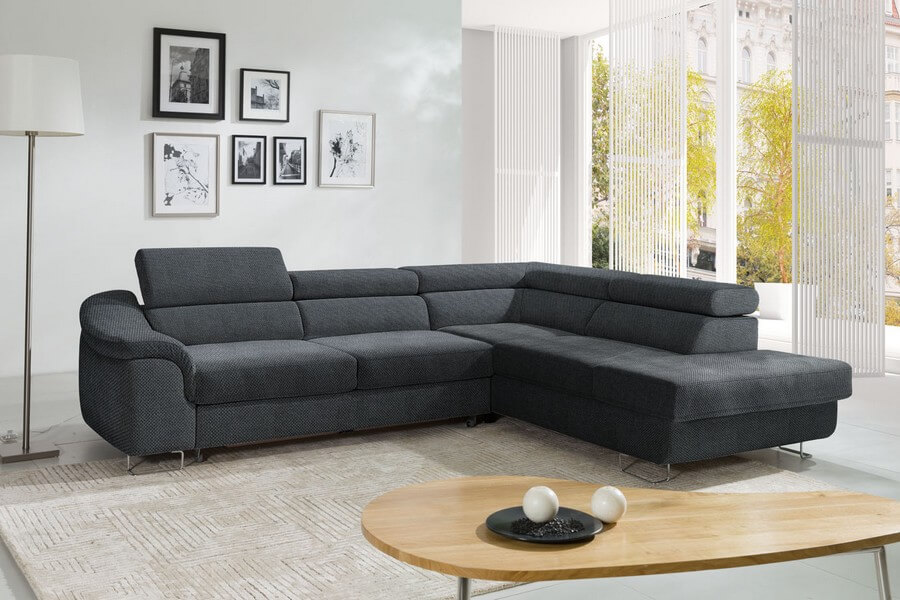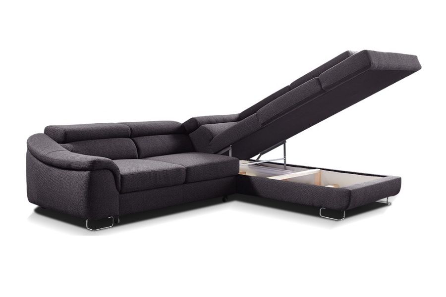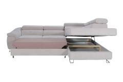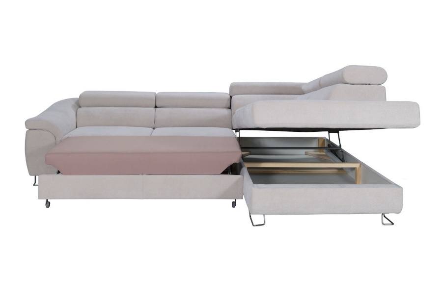 Coltar extensibil LAVOS L cu lada pentru depozitare, tetiere reglabile, personalizabil 272x219cm