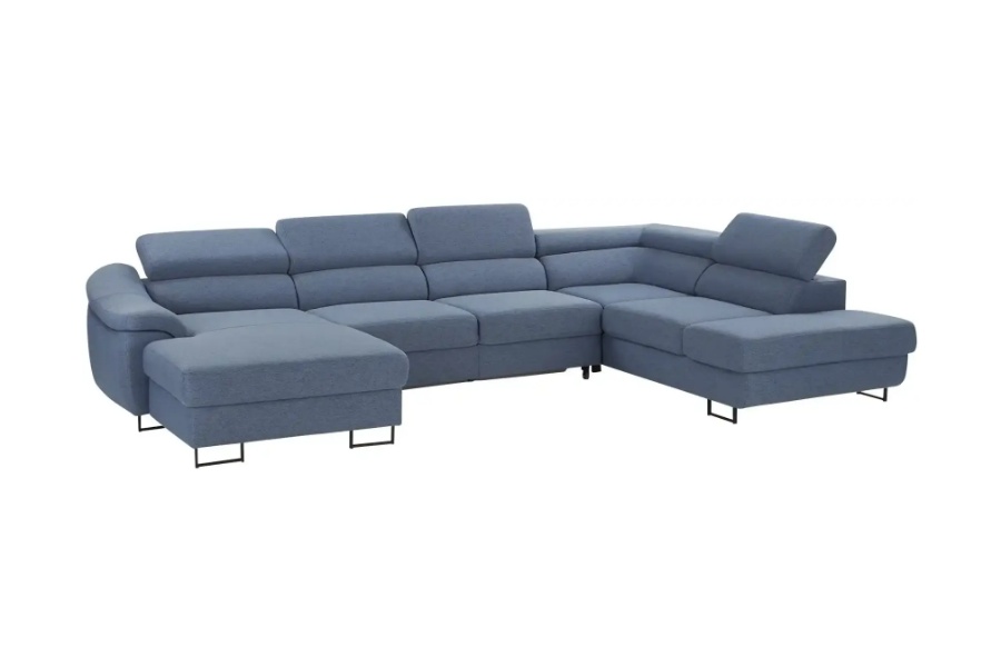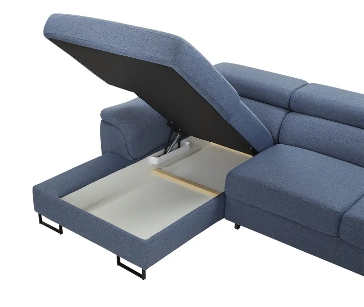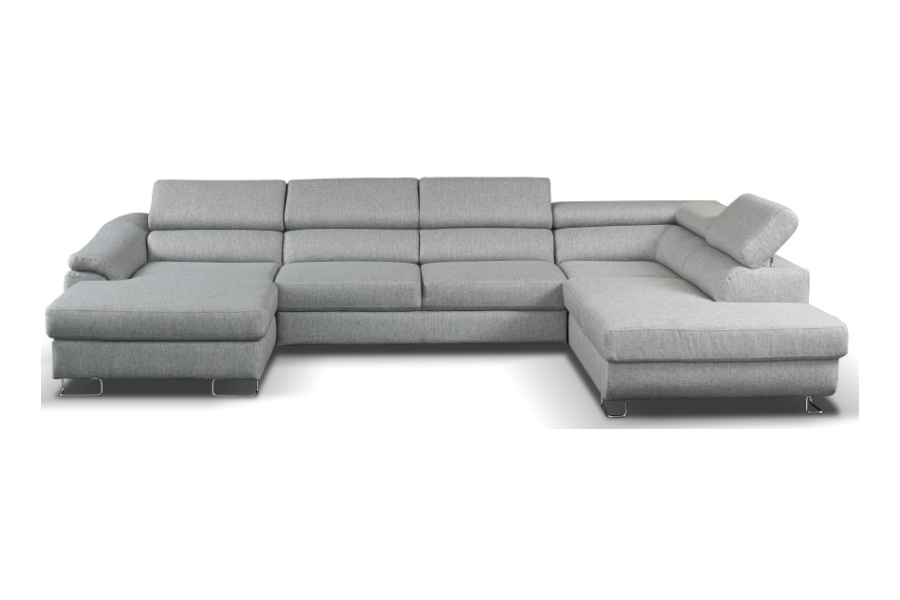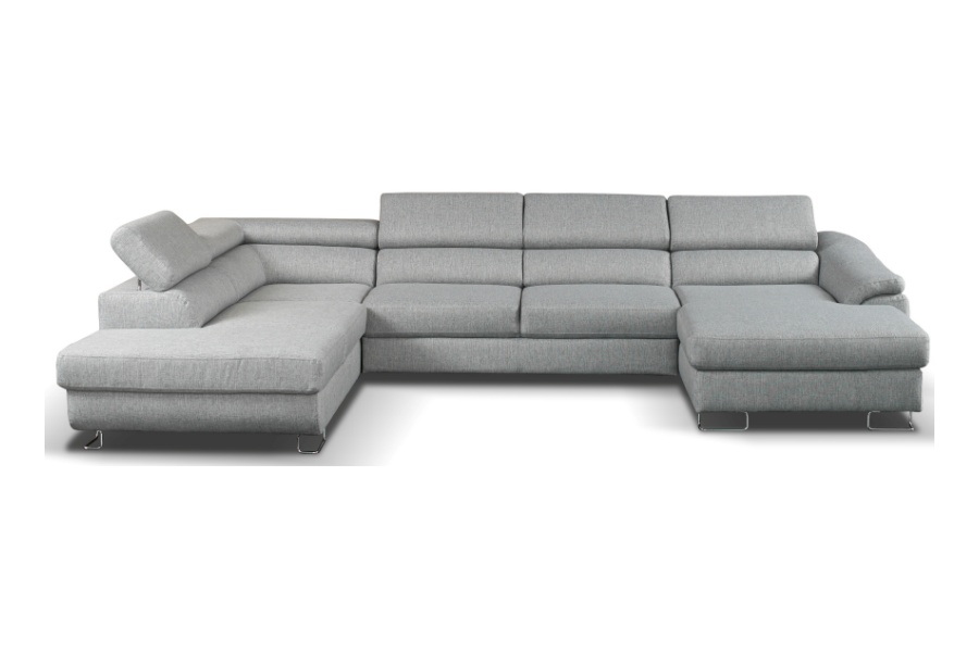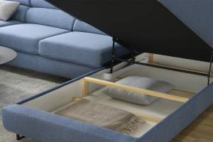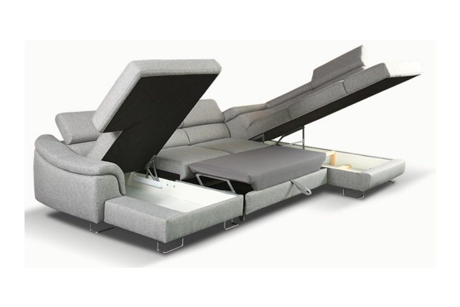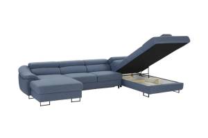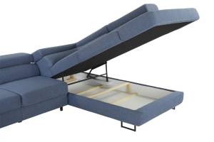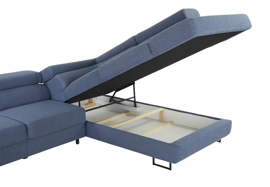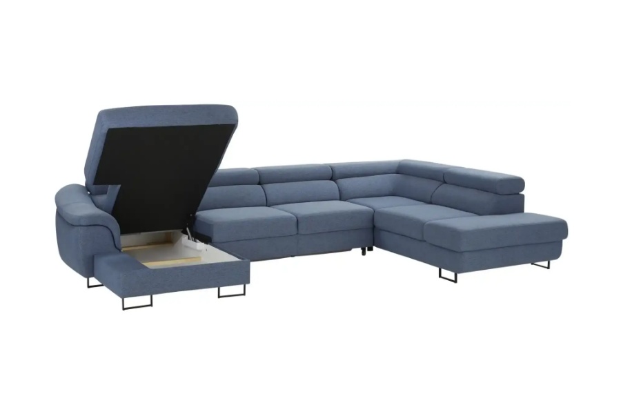 Coltar extensibil LAVOS U cu lada pentru depozitare, tetiere reglabile, personalizabil 223x346x172cm