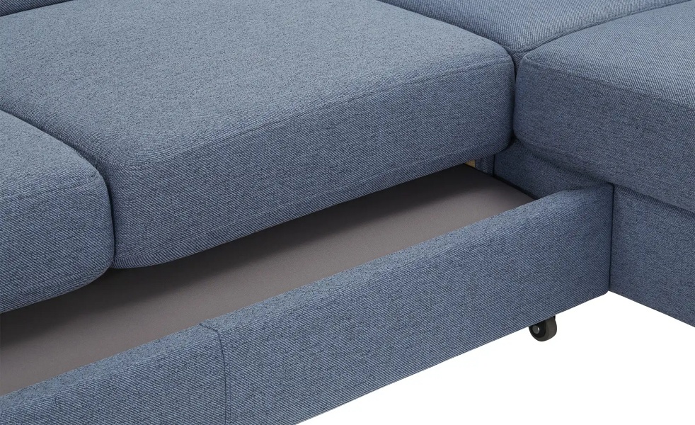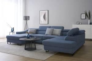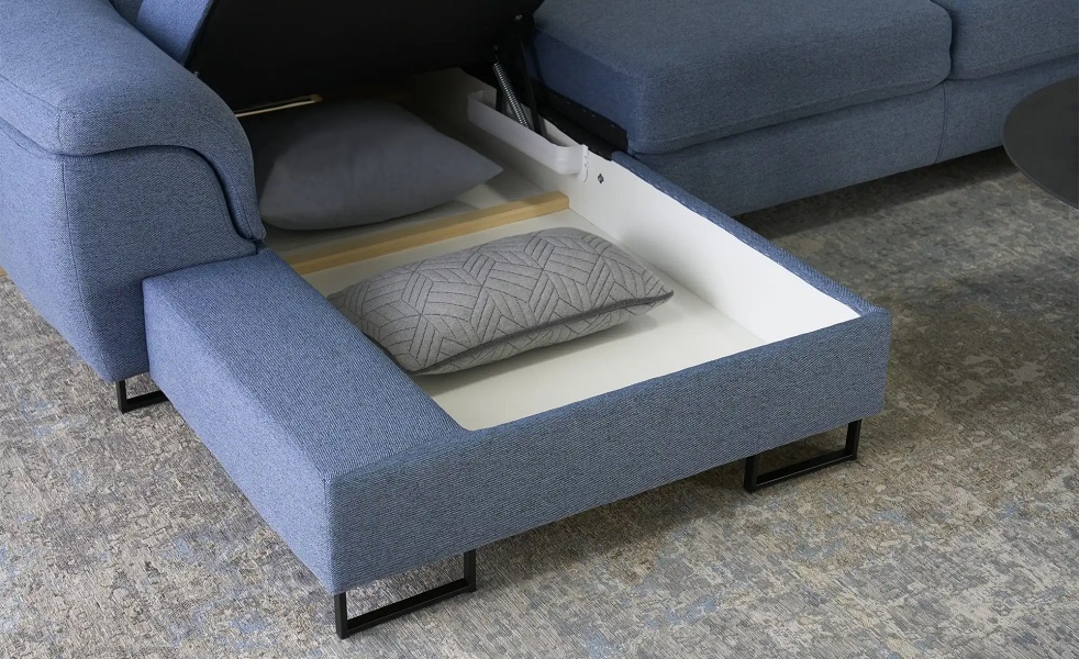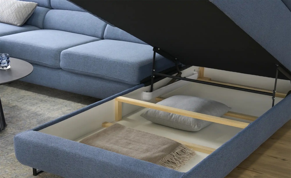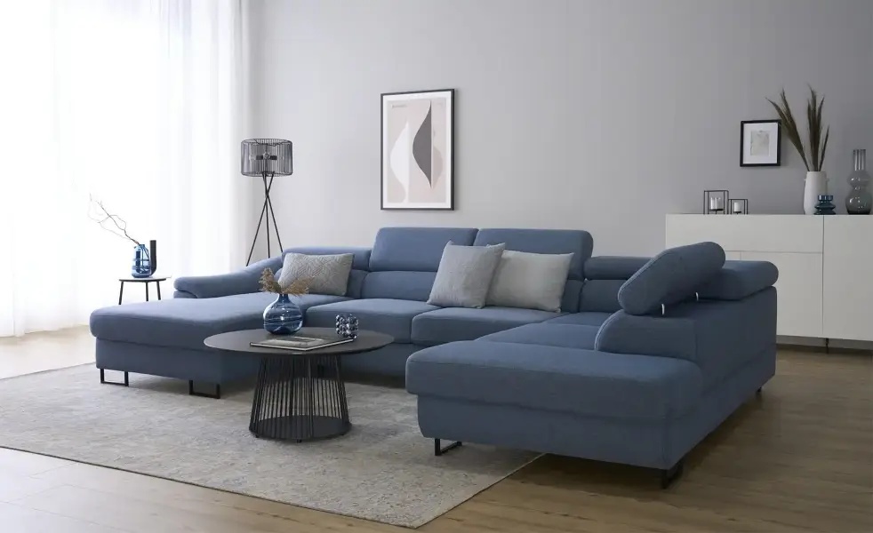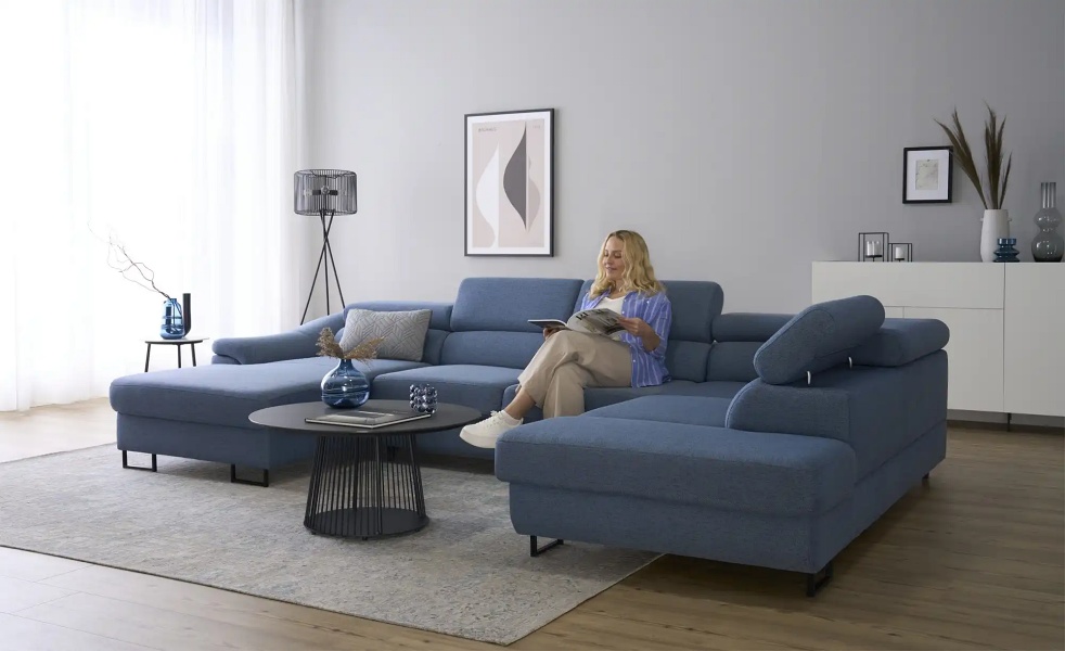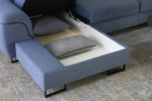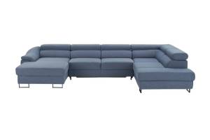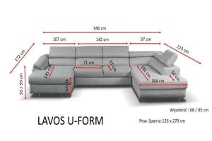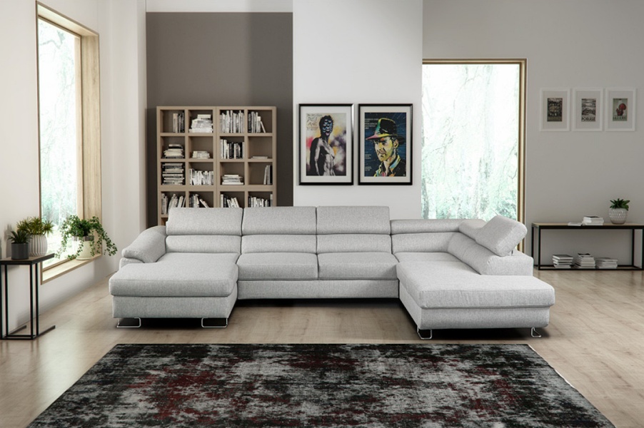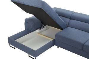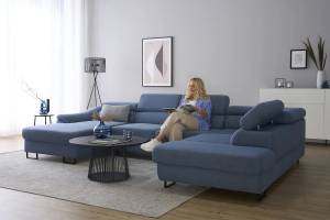Coltar extensibil LAVOS U cu lada pentru depozitare, tetiere reglabile, personalizabil 223x346x172cm