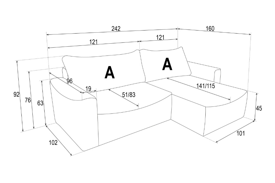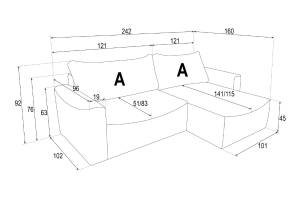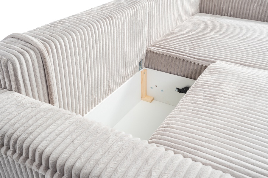 Alte caracteristici: 2 perne incluse, lada pentru depozitare, coltarul este modular (sezlongul poate fi montat pe stanga sau pe dreapta)