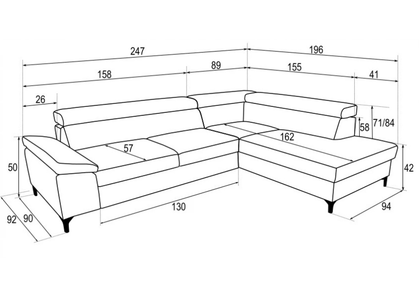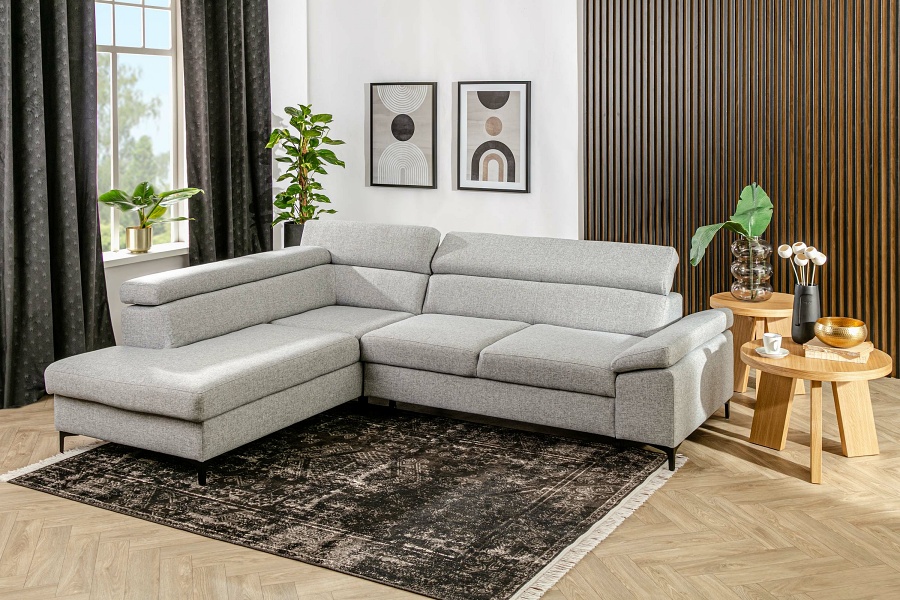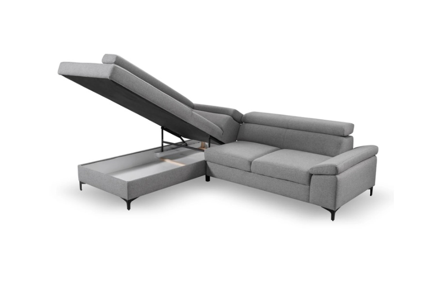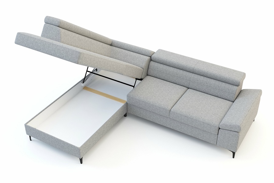 Coltar extensibil LONIGO cu lada pentru depozitare, tetiere reglabile, personalizabil 247x196cm