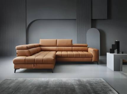 Coltar extensibil LUGANO S cu lada pentru depozitare, tetiere reglabile, personalizabil 268x174cm