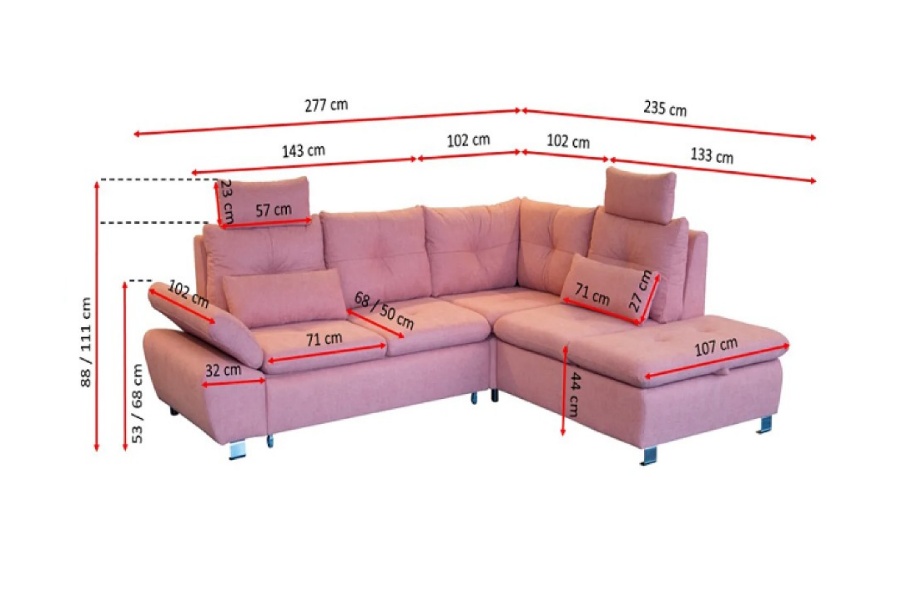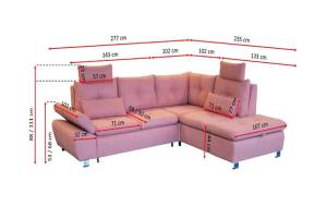 Coltar extensibil MADEIRA L cu lada pentru depozitare, personalizabil 277x245cm