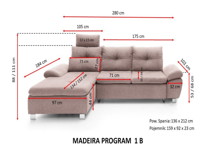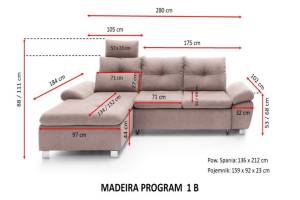 Coltar extensibil MADEIRA MINI cu lada pentru depozitare, personalizabil 280x184cm