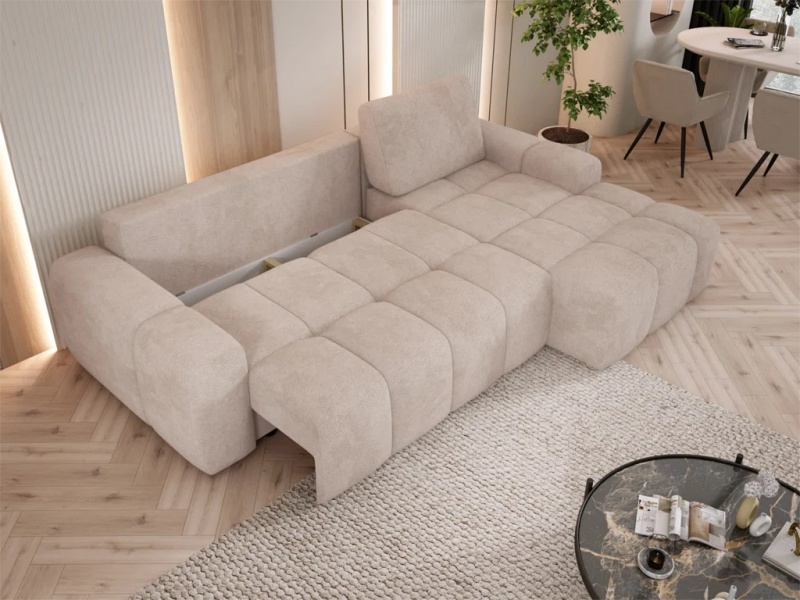 Coltar extensibil MAILO S cu lada pentru depozitare, personalizabil 291x176cm