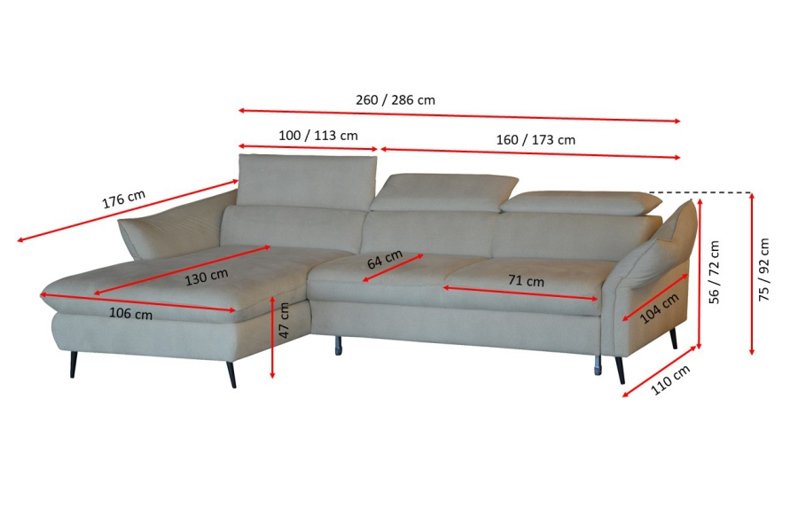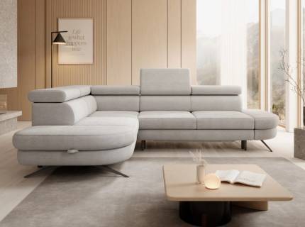 Coltar extensibil MANGO X cu lada pentru depozitare, tetiere reglabile, personalizabil 260-286x176cm