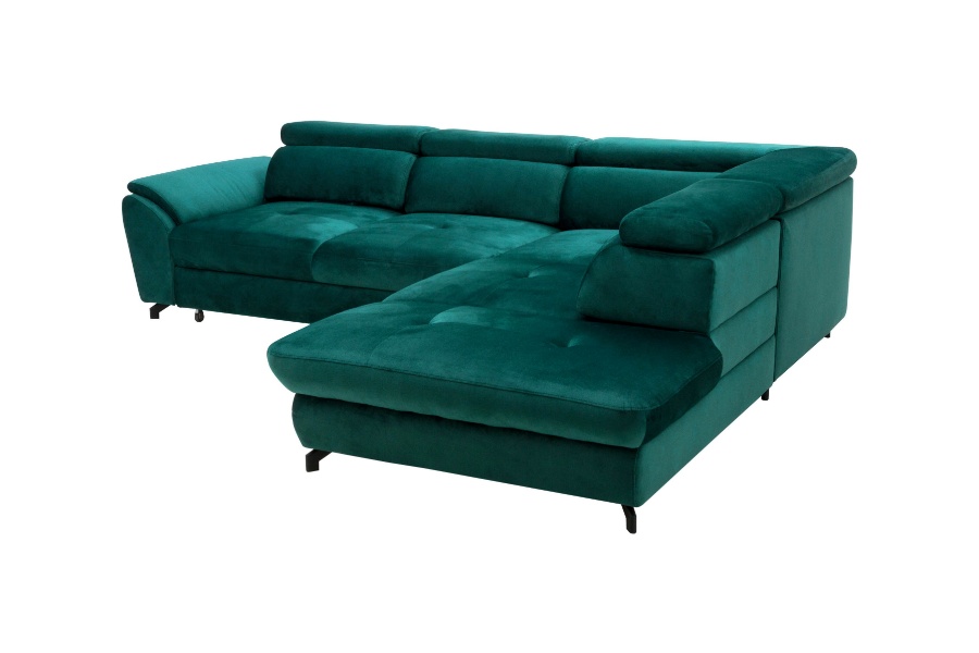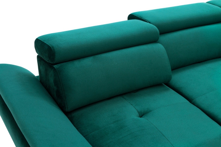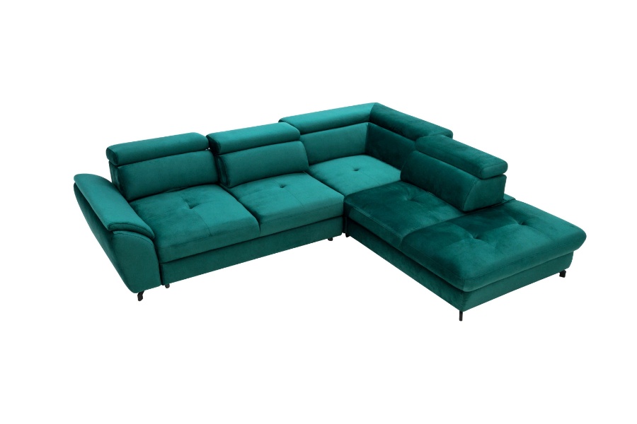 Coltar extensibil MAROLA L cu lada pentru depozitare, tetiere reglabile, personalizabil 277x237cm