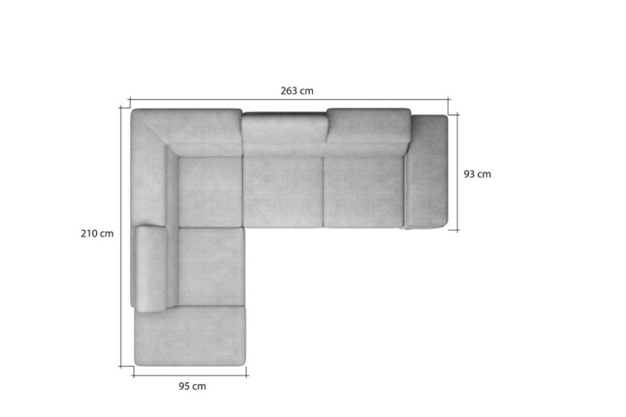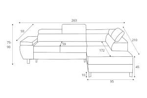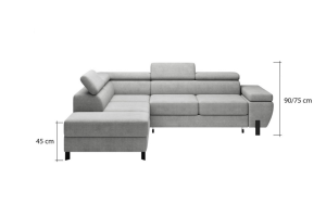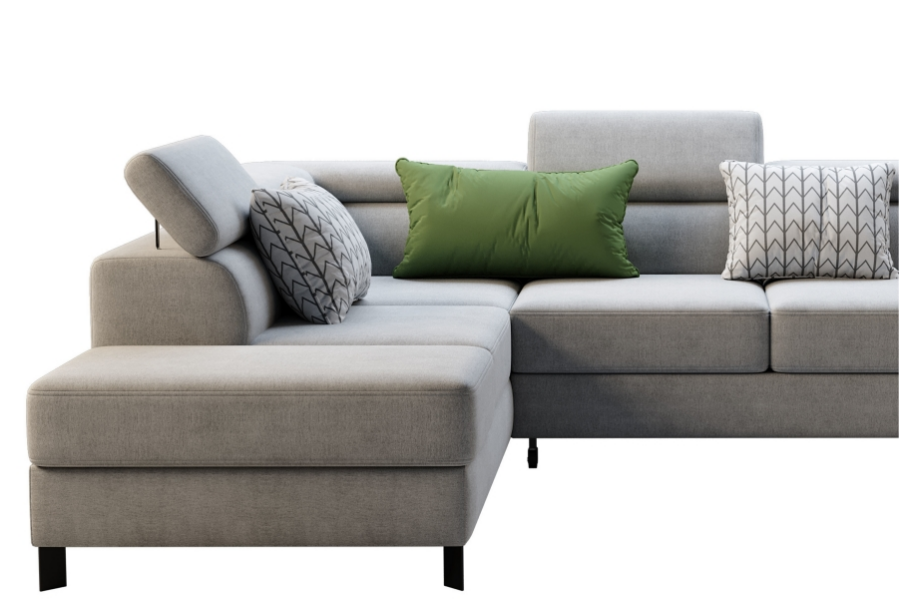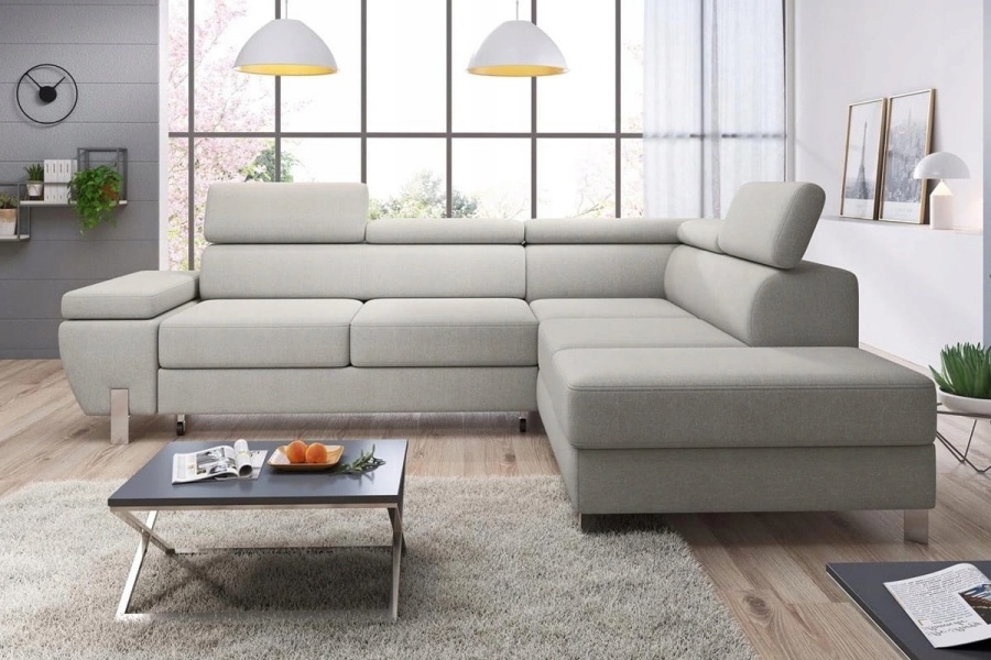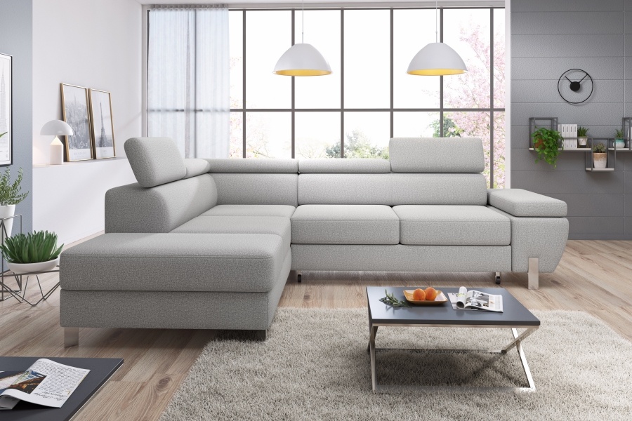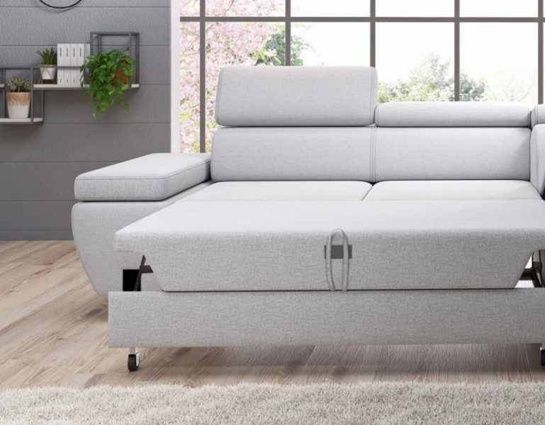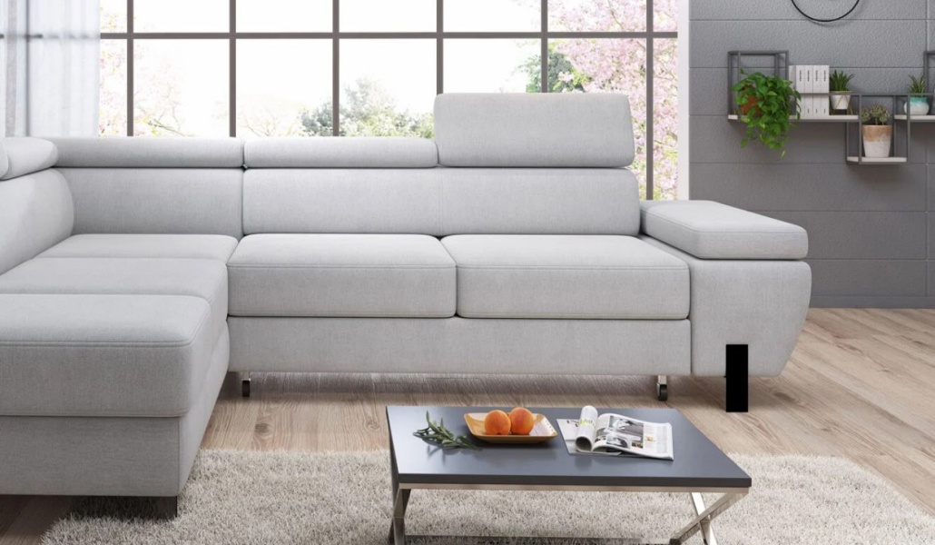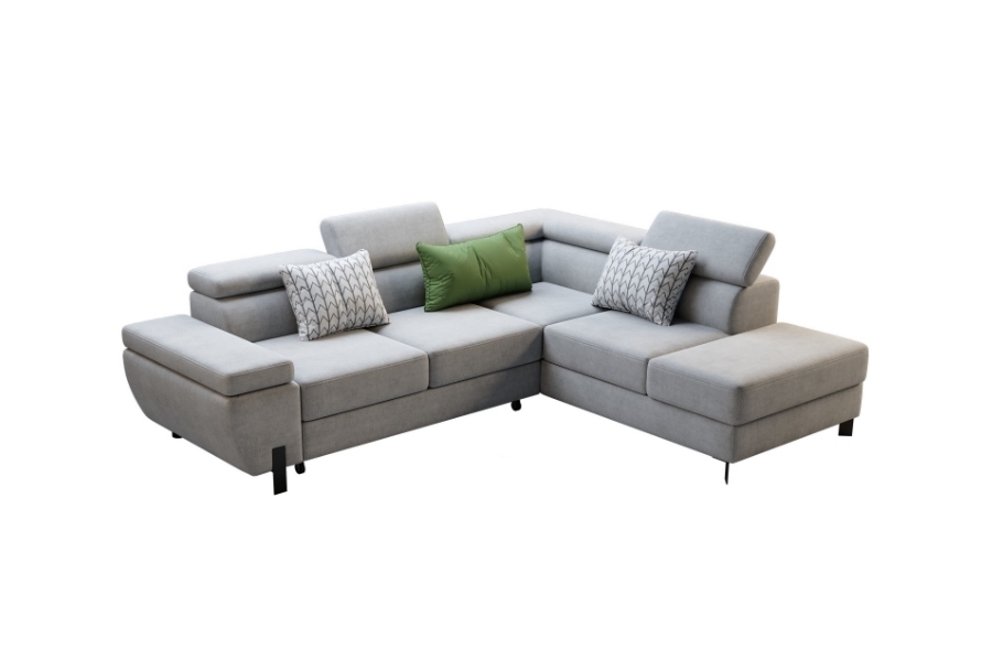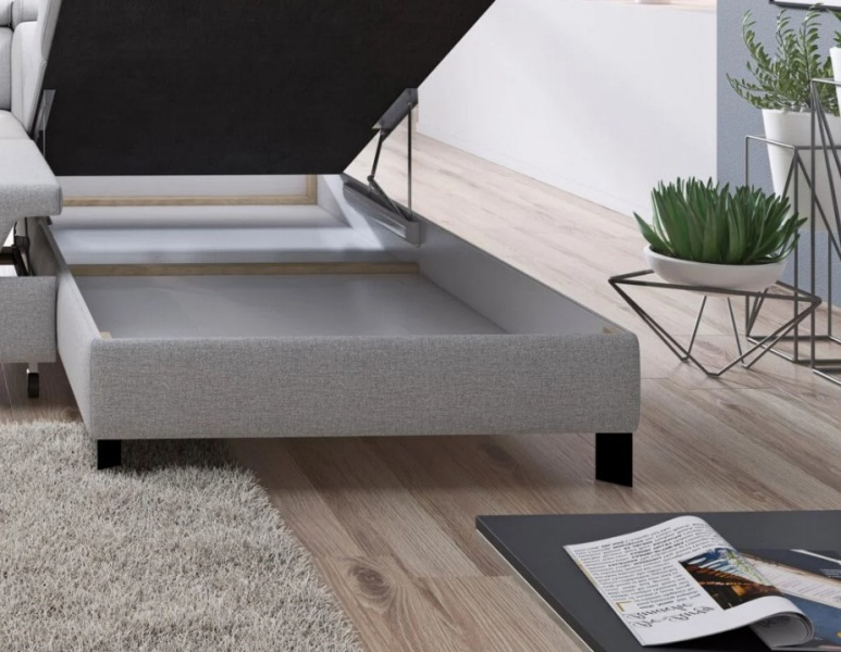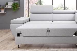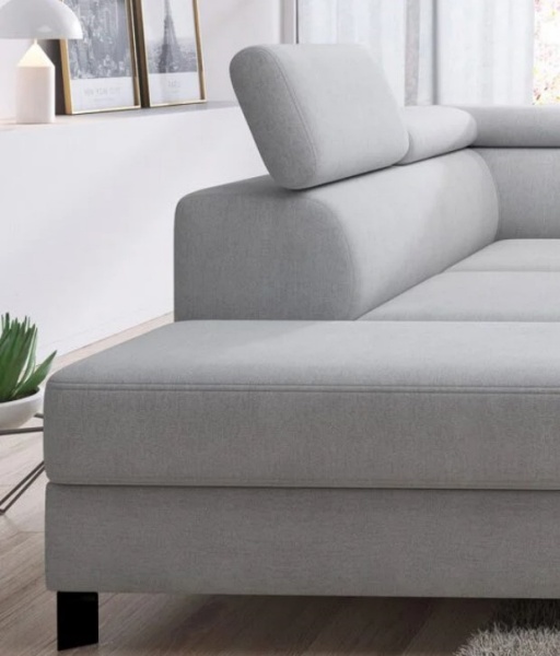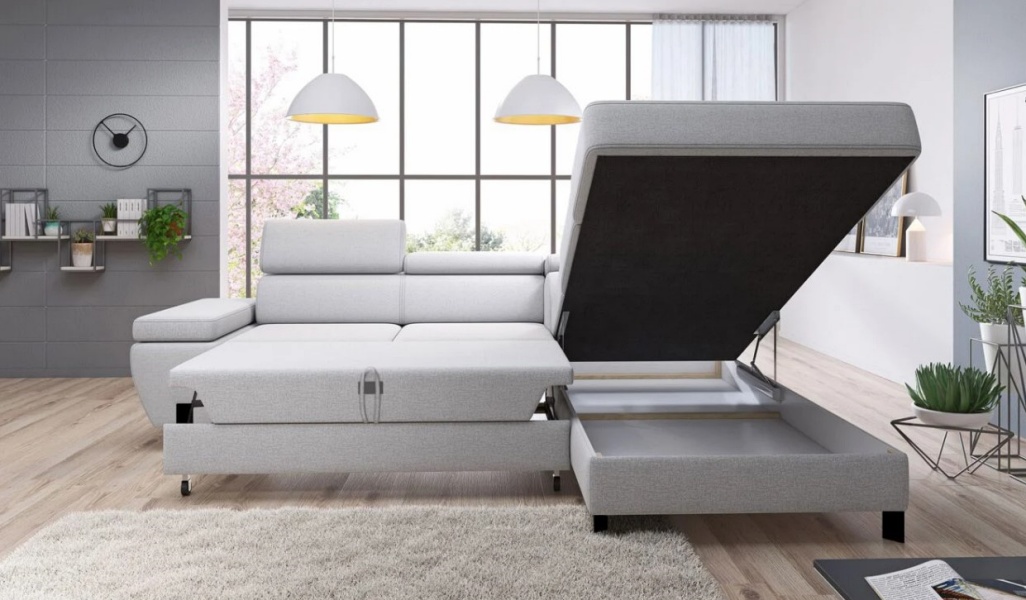 Coltar extensibil MOLINA L cu lada pentru depozitare, tetiere reglabile, personalizabil 263x210cm