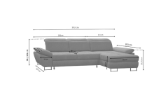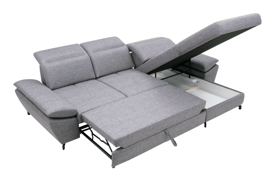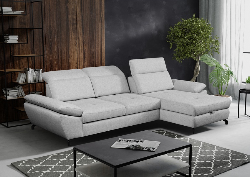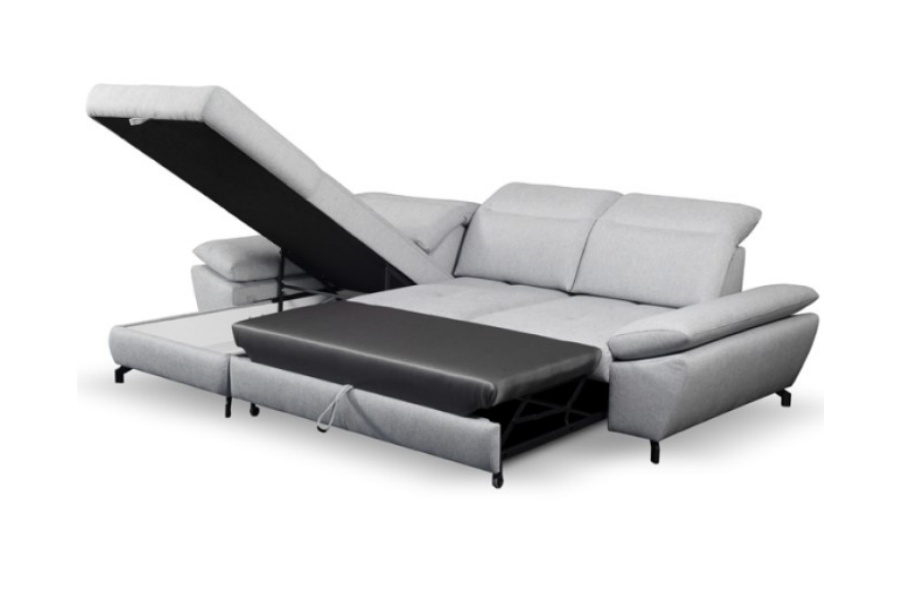 Coltar extensibil PAOLO reversibil, cu lada pentru depozitare, tetiere reglabile, spatar reglabil, personalizabil 292x201cm