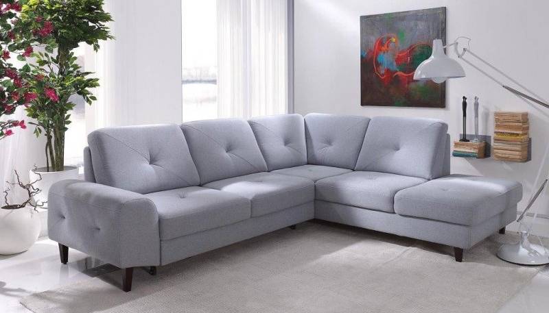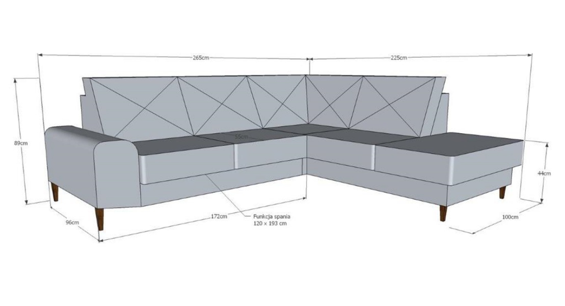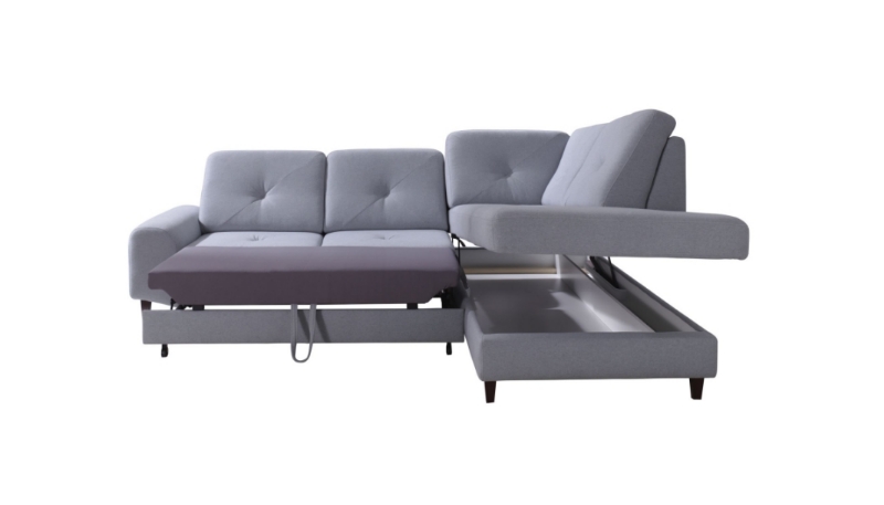 Coltar extensibil PLAY material textil gri, cu ladaa pentru depozitare 265x225cm