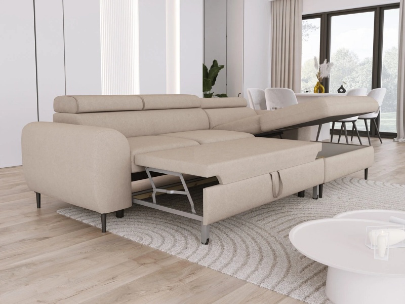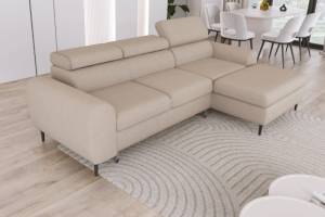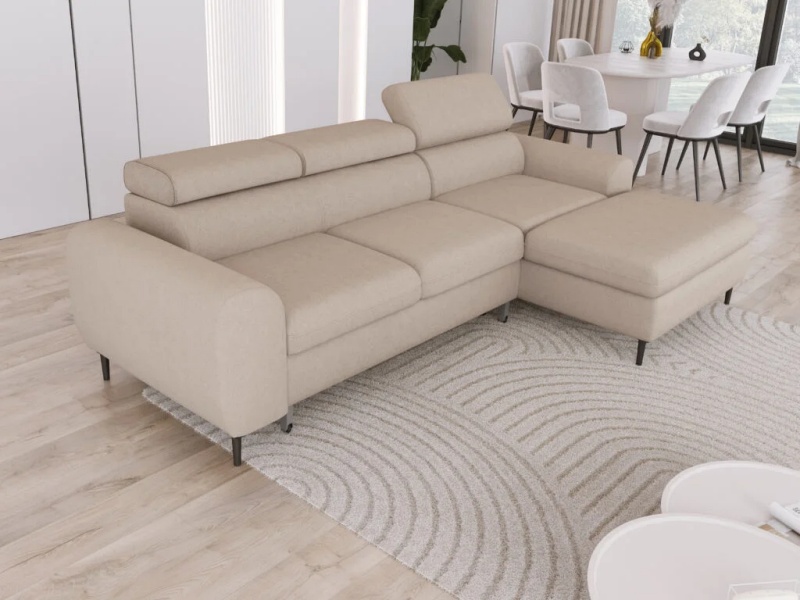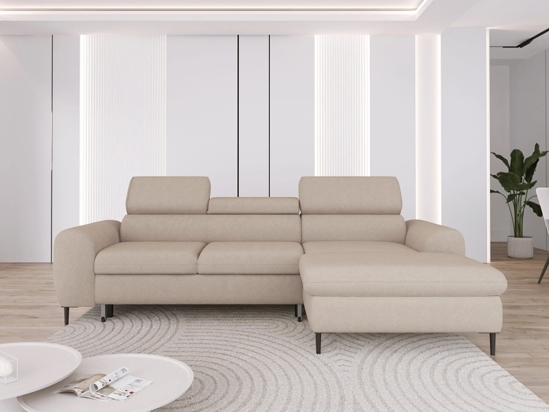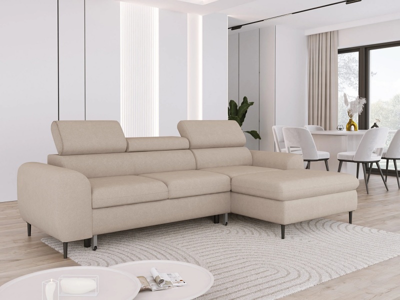 Coltar extensibil RAYO S cu lada pentru depozitare, tetiere reglabile, personalizabil 258x163cm