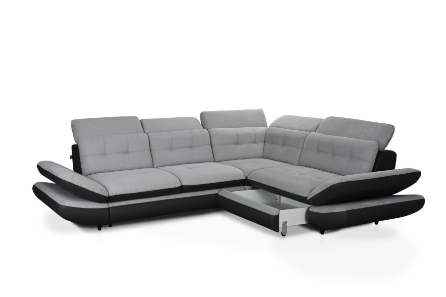 Coltar extensibil SALLY cu lada pentru depozitare, personalizabil 269x182cm